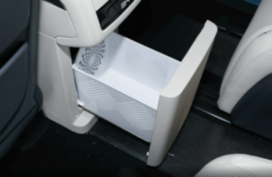 新車全系繼續采用2+2+3的7座布局,“冰箱彩電大沙發”套裝也繼續提供,后排配有15.6英寸的吸頂屏,支持K歌功能,并還提供28揚聲器的音響系統,配合5G網絡,車輛在視聽影音方面的表現不錯,車載冷暖冰箱依舊位于中央扶手下方。