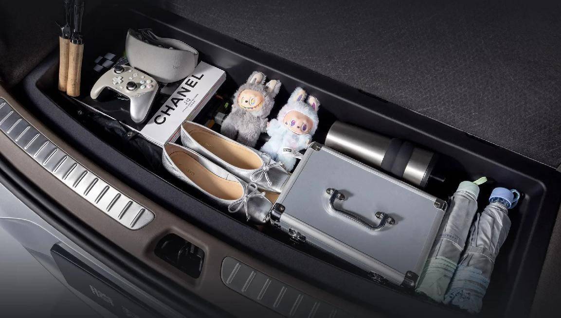 打開后備廂,按下隱藏按鈕,51L暗格彈出,放進(jìn)兩個20寸行李箱,這個隱藏暗格太實用了,能放兩個行李箱,外面再堆嬰兒車、釣魚包,后備廂還能保持整齊。以前出門像搬家,東西扔得滿車都是,現(xiàn)在隨手一放就歸位,這車比家里還整齊。三代人出門,東西多到離譜。但N8L的49處儲物,把“沒處放”變成“隨手放”——不用再跟老婆搶扶手箱,也不用讓孩子把玩具抱在懷里,這才叫“省心”。