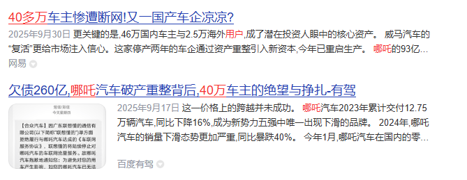 傳統(tǒng)車企退出市場,可以保障用戶在幾年,甚至十幾年內(nèi)的維修保養(yǎng)不受影響,而一旦新勢力車企退出市場,用戶將瞬間失去很多權(quán)益,哪吒汽車退出市場,40萬用戶陷入困局就是先例。