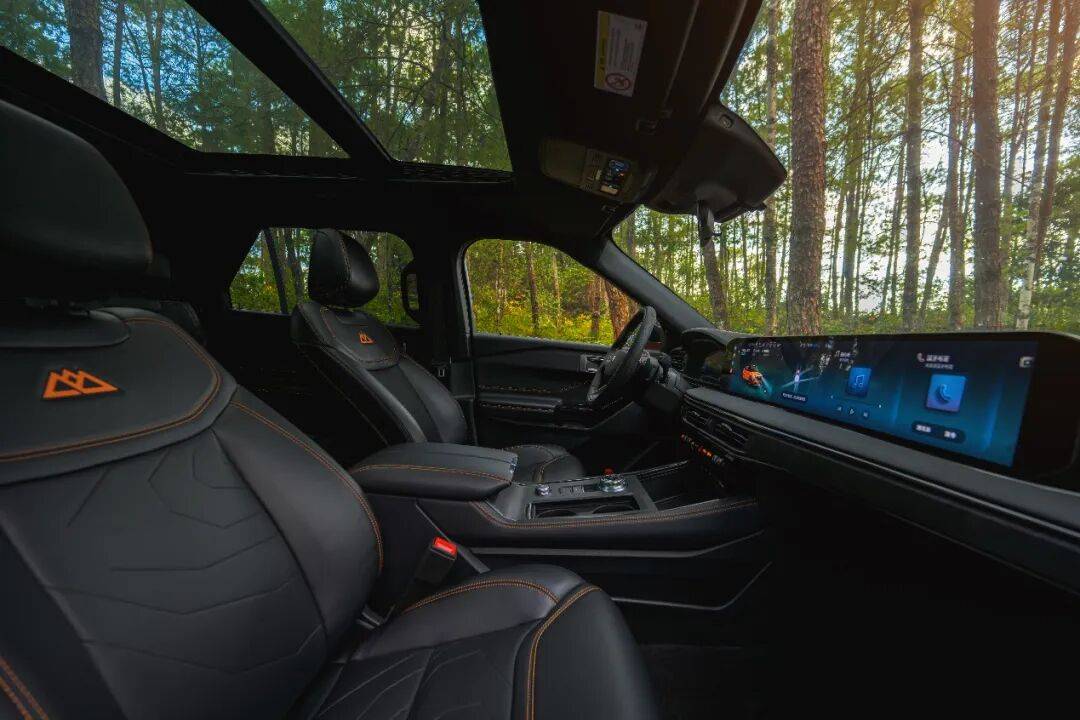 新車基于福特汽車CD6縱置后驅架構打造,依然采用2.3T EcoBoost發動機+10AT變速箱動力組合,最大功率213kW,峰值扭矩445N·m。相較普通版探險者,昆侖版車型在越野性能方面會有進一步進階,搭載智能適時四驅系統搭配TMS六模地形管理系統,覆蓋拖車、運動、越野等六種駕駛模式;配備純機械結構托森B型限滑后差速器、265胎寬18寸全地形輪胎及專屬高強度金屬底盤裝甲,再加上223mm離地間隙,讓砂石、濕滑等復雜路面都能穩健通過。81L超大油箱配合92號汽油適配性,則有效解決了偏遠地區能源補給難題。