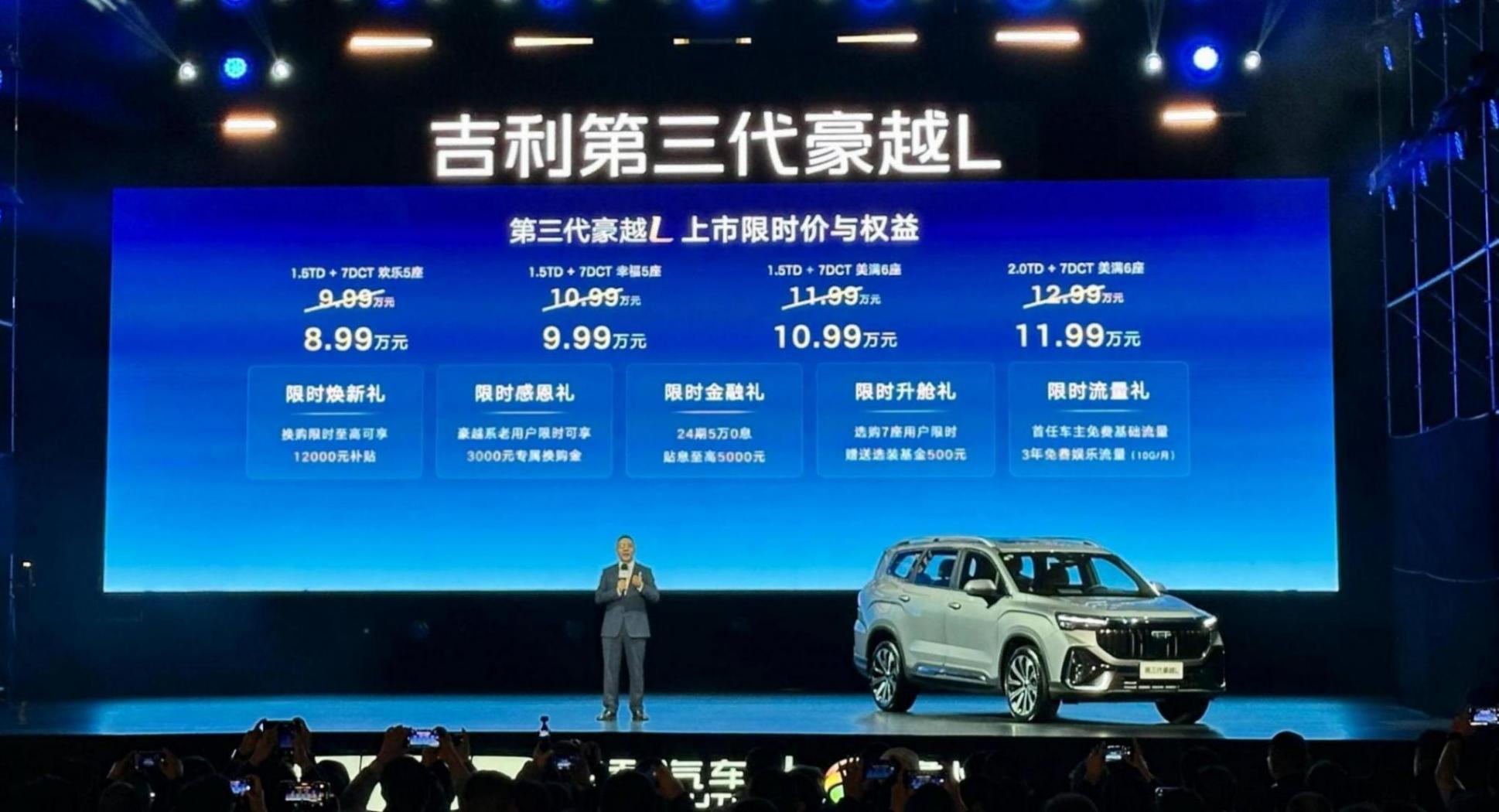 吉利第三代豪越L正式上市,限時價8.99萬元起