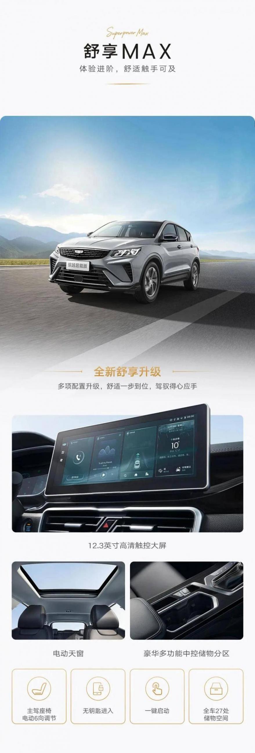 7月16日,吉利繽越超能MAX版車型正式上市,這款車型是吉利繽越超能版的新增配置。作為頂配版本,新車進行了部分升級優化,限時先享價7.18萬元。