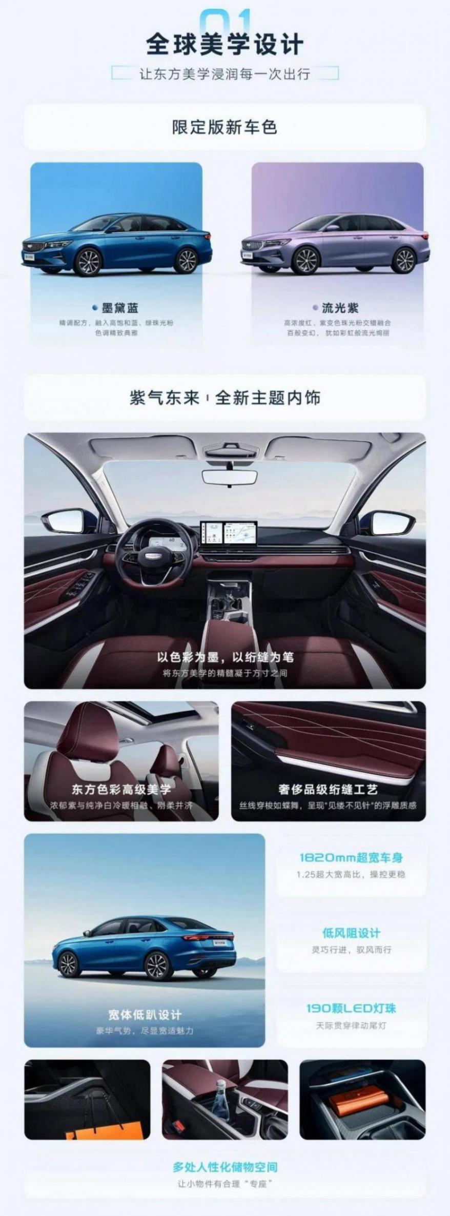 車內則依舊采用12.3英寸中控大屏+10.25英寸全液晶儀表的組合,搭載銀河OS車機系統,新增雙拼色主題內飾。此外,帝豪400萬紀念款車型還支持手機App遠程控制。