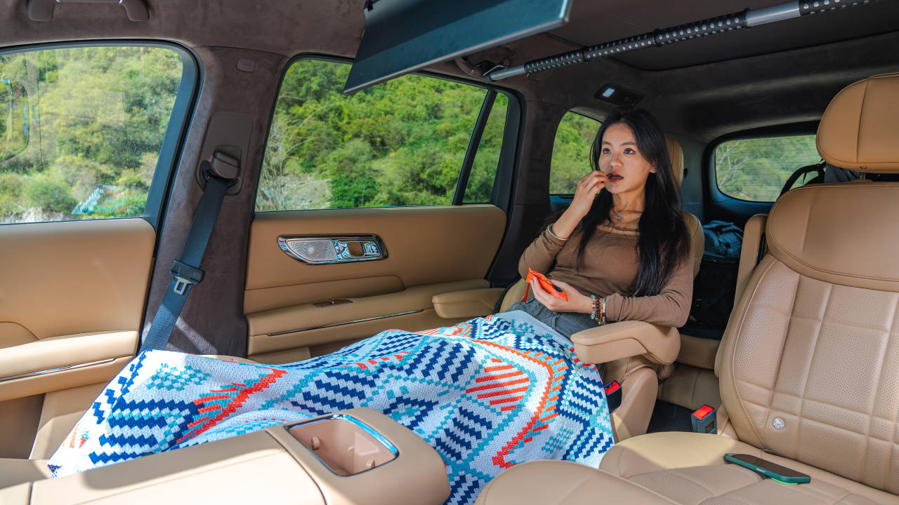 如果說后備箱解決的是"裝得下"的問題,那么深藍S09的第二排則重新定義了"坐得好",能夠秒變“移動”客廳。