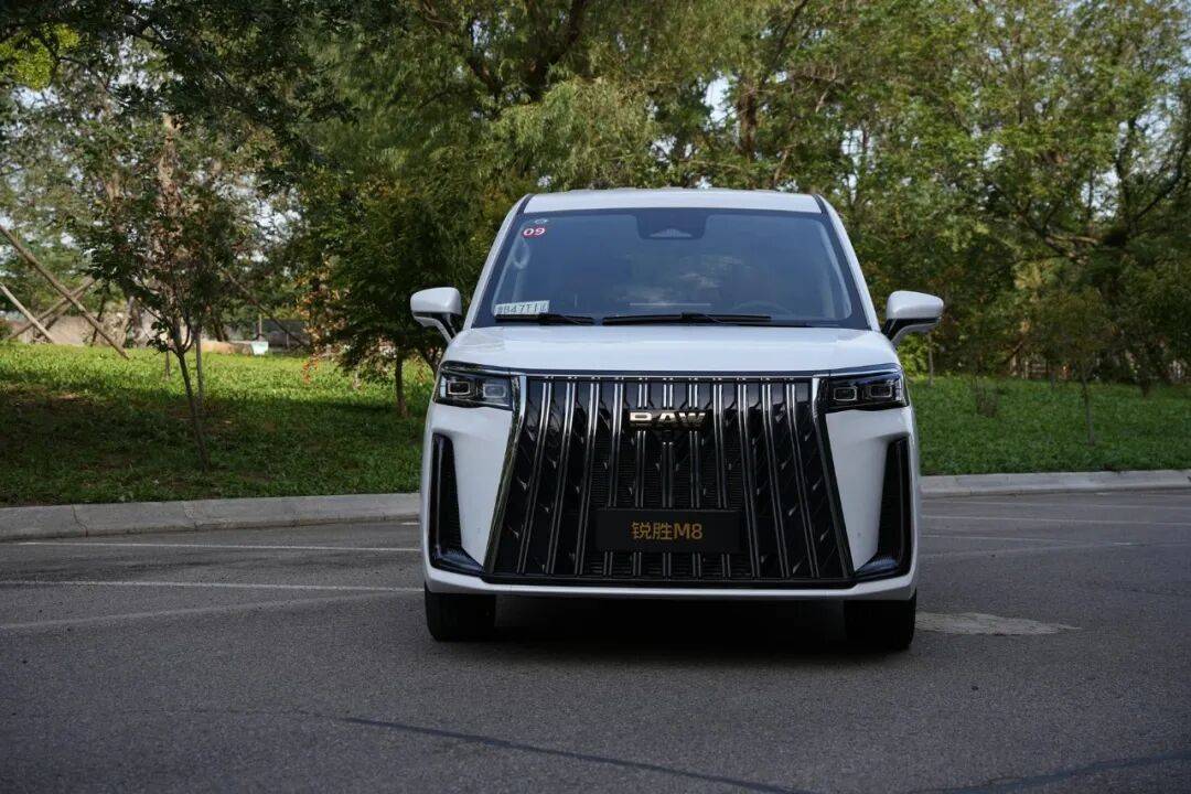 當第一眼見到銳勝M8時,它的特點一目了然:夠大!為了讓外觀顯得不笨重,設計師加入了很多巧思,圍繞東方美學設計。前臉將中國的山水藝術融入前格柵中,引擎蓋的棱線描繪的是山水褶皺,飛瀑格柵的12組24條鍍鉻飾條象征一年12月24節氣的周而復始。還有登峰日行燈,燈帶自下而上流動點亮,為前臉補充了科技感。
