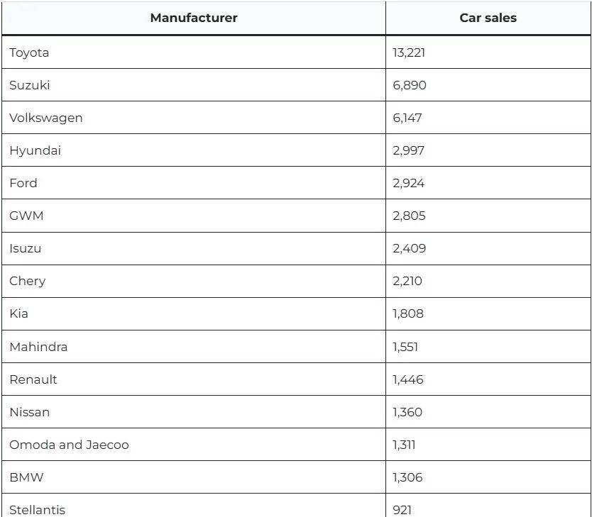 這一組合拳使得奇瑞系產品價格覆蓋了從十余萬蘭特到八十萬蘭特的廣闊區間,形成了強大的市場合力。到2025年10月,僅奇瑞、Omoda、Jaecoo、Jetour四個品牌的合計銷量就達到4,377輛,在全市場排名中躍升至第四位,僅次于豐田、鈴木和大眾,將現代、福特等老牌強者甩在身后。