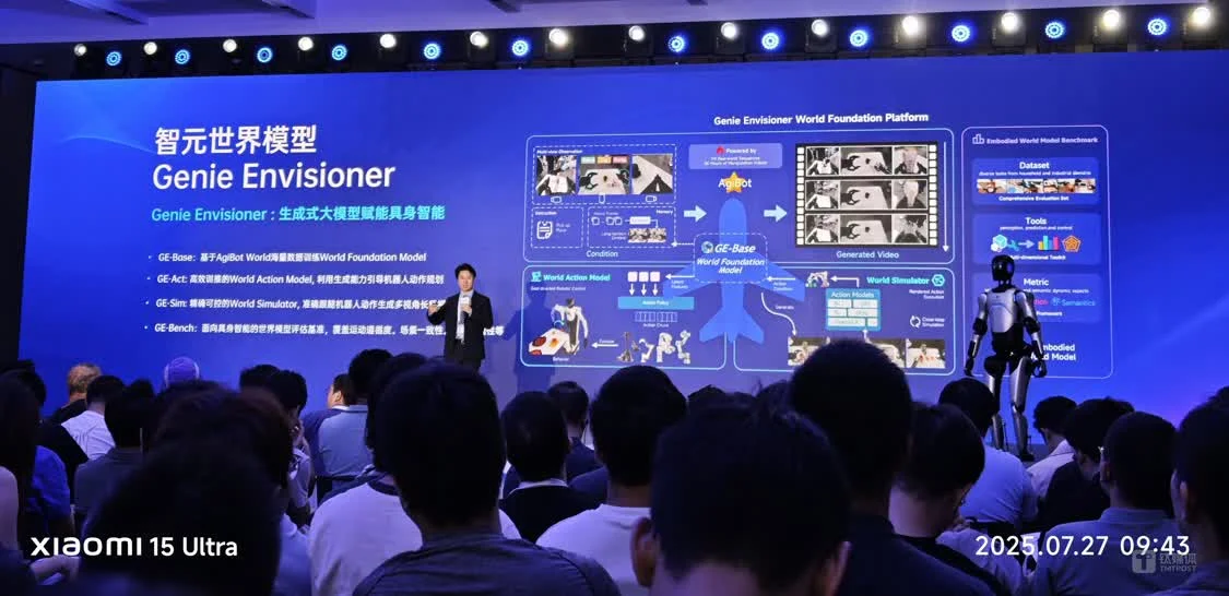 智元機器人在WAIC期間發布了行業首個真正面向真實世界雙臂機器人的世界模型開源平臺“Genie Envisioner”(以下簡稱 GE)。該平臺融合了預測、控制、評測三大核心能力,為機器人從“看見”到“行動”提供了端到端、一體化的解決方案,讓機器人在數字時空里先彩排、再上崗。