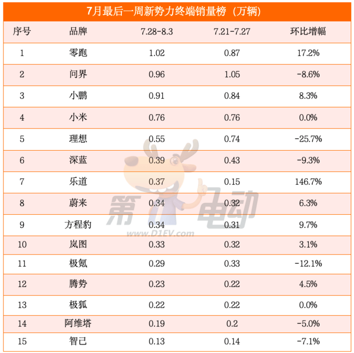 ▍時隔8周,零跑再超問界,樂道暴漲首進前十