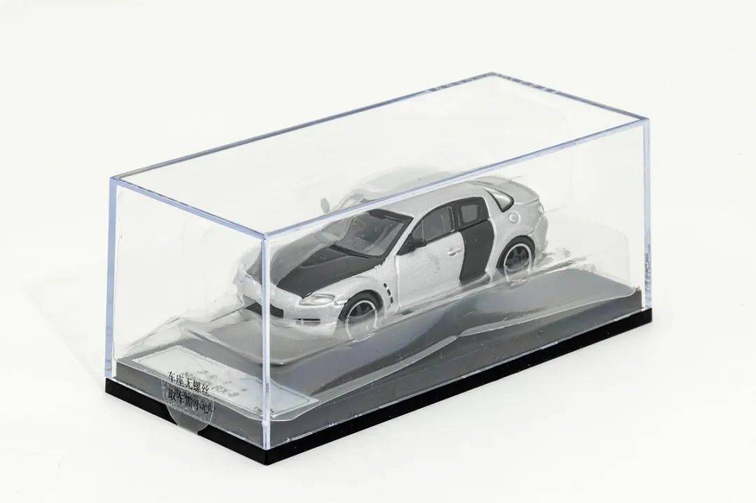 這次給大家介紹的馬自達RX-8模型來自于DCT這個品牌,也是我們熟悉的老朋友了,模型的比例為1/64,材質為合金,這批RX-8一共有珍珠白、深灰色、黃色和我們本次試玩的銀色版,模型官方價格49元(實際到手的價格會更低),本產品附送了透明展示盒,這次試玩馬自達RX-8 在整體上來說細節還算可以、漆面中規中矩,關鍵在于價格較低,性價比高,而且產品也有馬自達的授權。